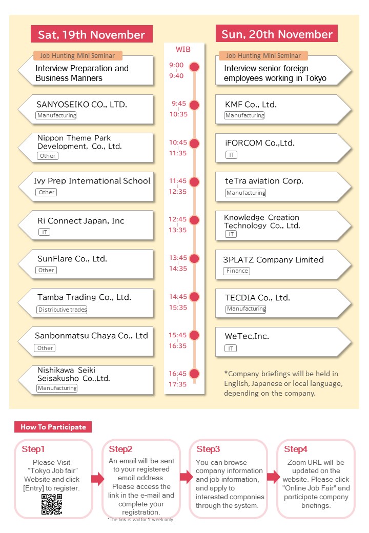 Kamu bisa mengikuti Tokyo Job Fair yang akan diselenggarakan pada: